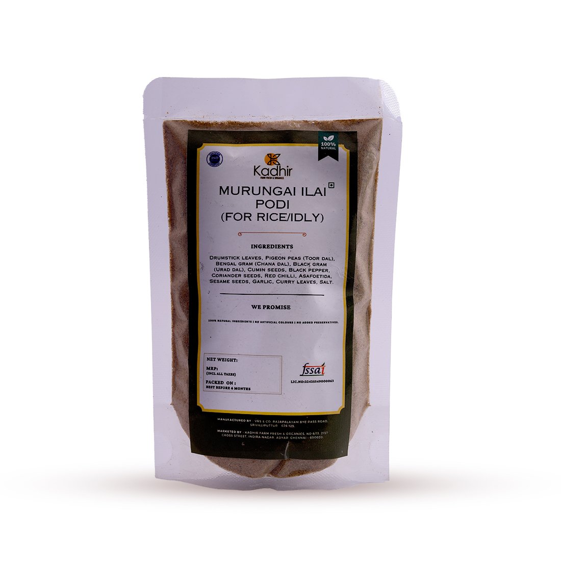 Ingredients – Drumstick leaves, Pigeon peas (Toor dal), Bengal gram (Chana dal), Black gram (Urad dal), Cumin seeds, Black pepper, Coriander seeds, Red chilli, Asafoetida, Sesame seeds, Garlic, Curry leaves, Salt.